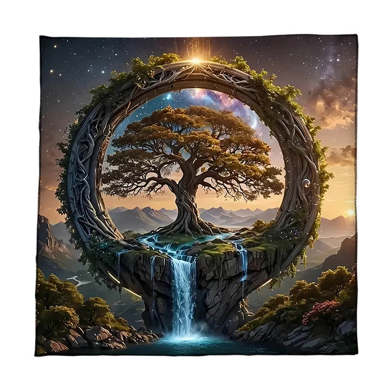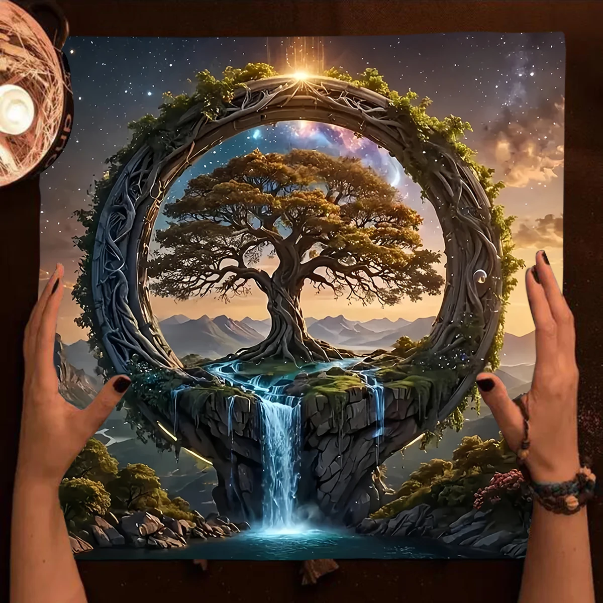 Tree of Life Tarot Altar Cloth โ€“ Starry Sky & Waterfall Design
