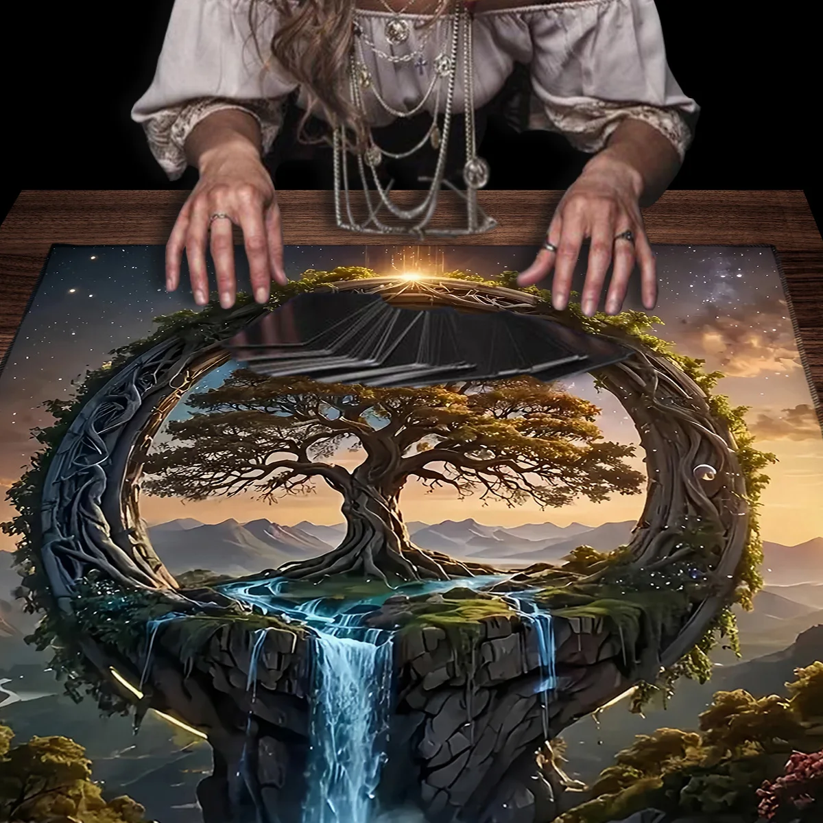 Bring beauty, intention, and sacred energy to your readings with this Tree of Life Tarot Tablecloth. Featuring a stunning celestial scene with a majestic tree framed in a mystical ring, cascading waterfalls, and a starry night sky, it sets the perfect atmosphere for tarot, oracle, and divination work.