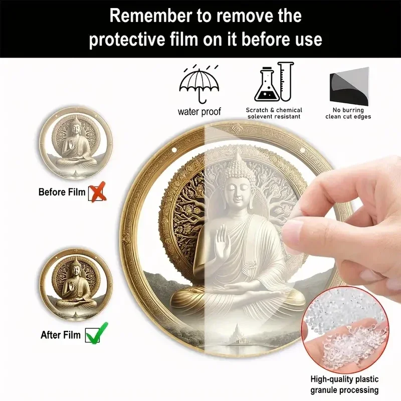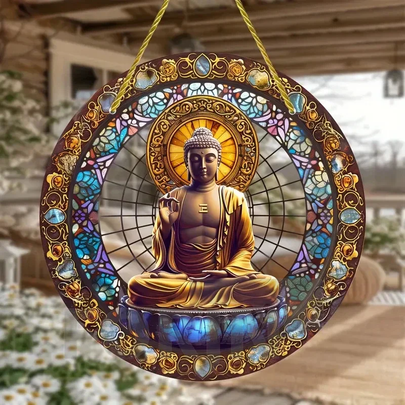 Invite serenity, wisdom, and enlightenment into your home with this Buddha Suncatcher Collection. Designed in luminous stained-glass style, each round acrylic piece glows with vibrant light, transforming sunlight into a blessing of peace and mindful awareness.