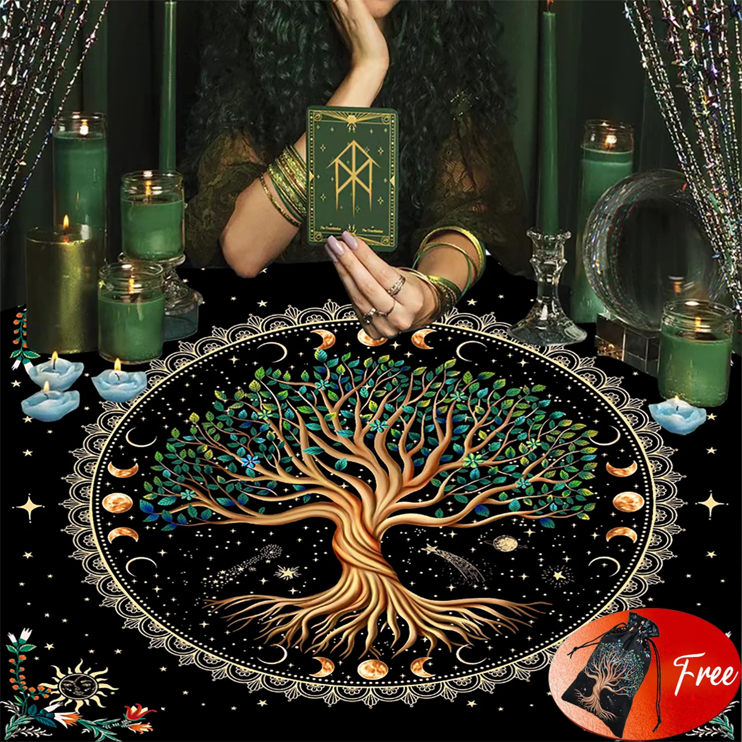 Keywords: tree of life altar cloth, tarot tablecloth with bag, divination mat, witchcraft decor, pagan wiccan supplies, velvet tarot cloth, tarot accessories