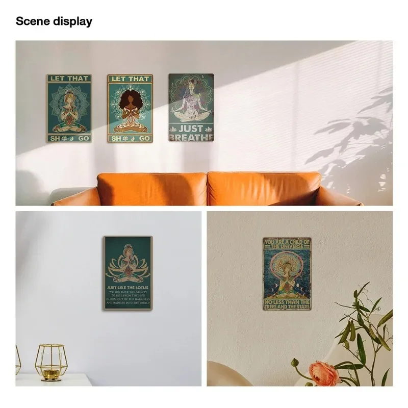 Bring balance, laughter, and mindful presence into your space with these vintage-style yoga metal signs. Featuring retro artwork with a touch of Zen wisdom and playful humor, each sign blends meditation themes, cosmic elements, and lighthearted sayings that remind us not to take life too seriously. Perfect for yoga studios, meditation corners, or as a unique gift for free spirits, these signs combine retro charm with mindful living vibes.