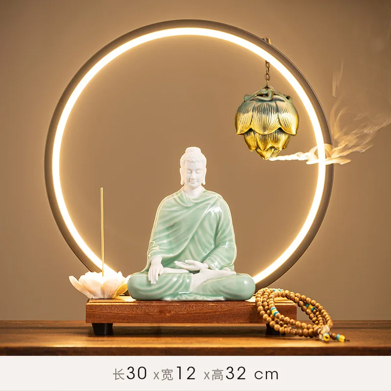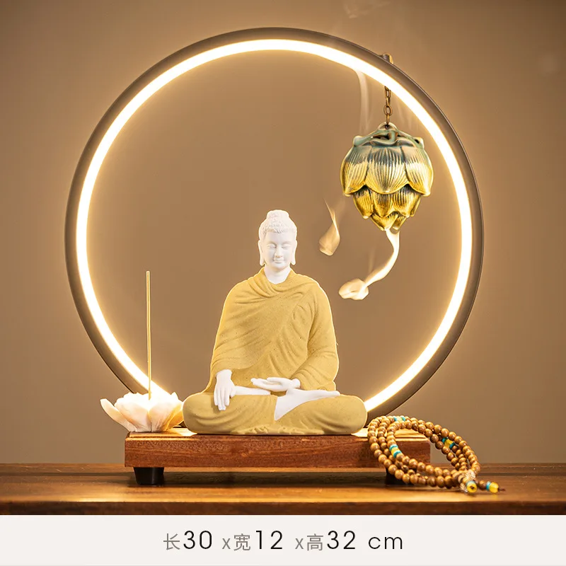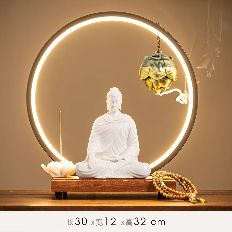 The illuminated circle represents wholeness, eternity, and the infinite path of enlightenment, while the incense smoke rises like prayers carried to the heavens. Together, they create a sacred ambiance that uplifts your living room, meditation corner, or porch into a temple of serenity.