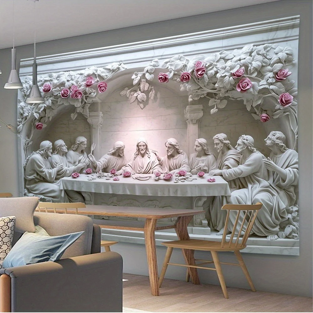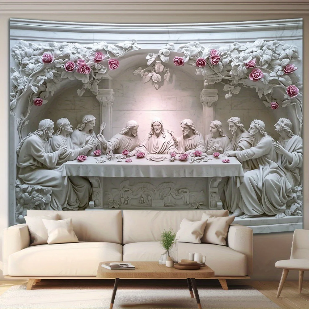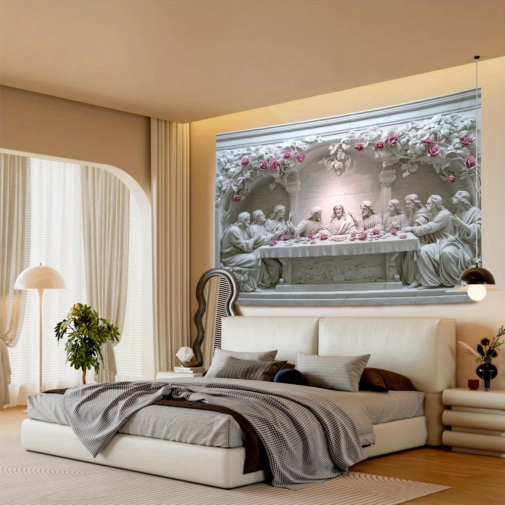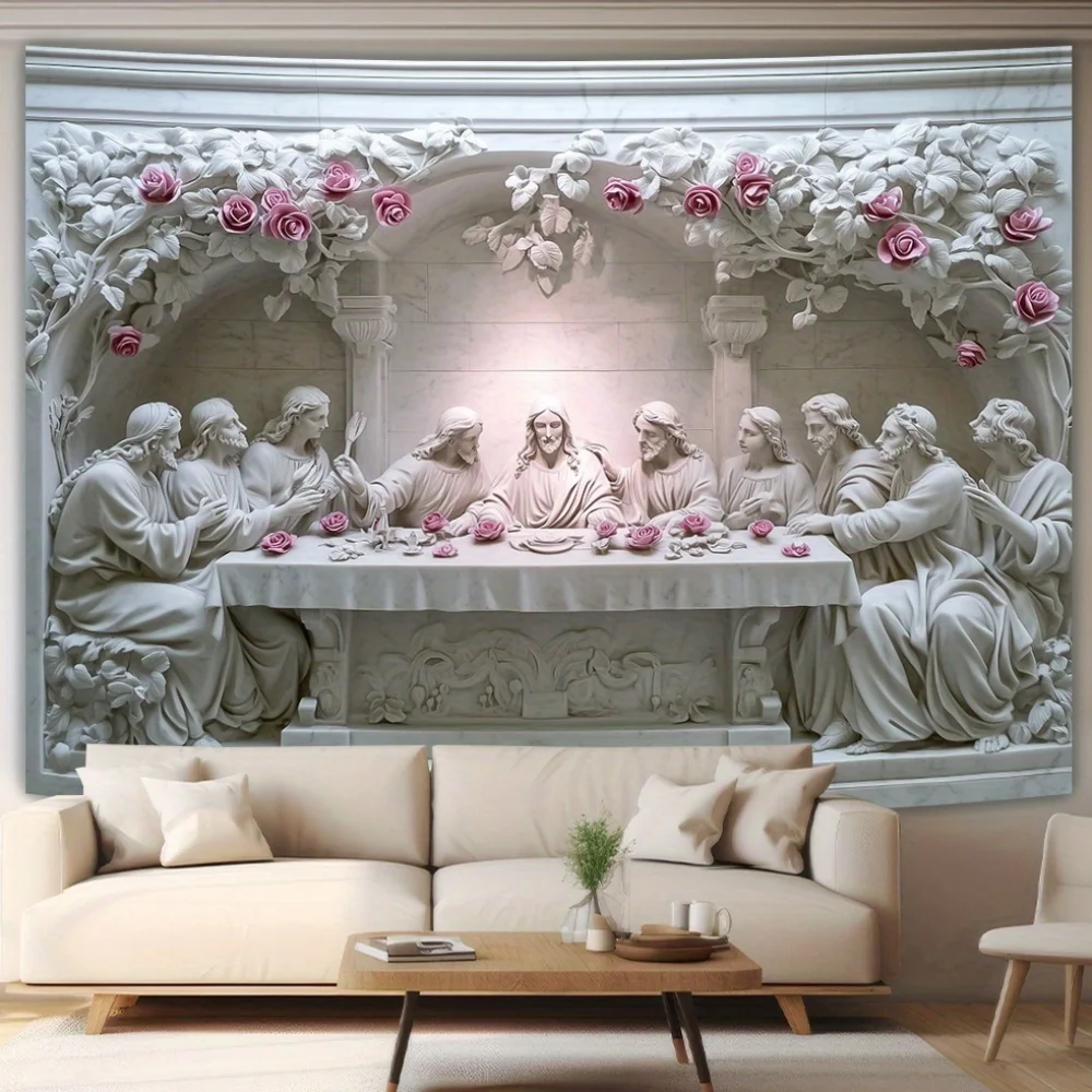 β¨ Experience the reverence of The Last Supper brought to life in stunning stone relief detail. Carved in the ornate Baroque Italian style, this masterpiece captures the solemnity of the moment beneath grand arches entwined with delicate vining pink roses. A soft, heavenly light focuses on Jesus at the center, illuminating His serene expression and the gathered disciples. The textured stonework and intricate floral accents add depth, beauty, and sacred energy to your space. This tapestry is more than dΓ©corβitβs a blessing for your home, infusing it with devotion and spiritual grace.