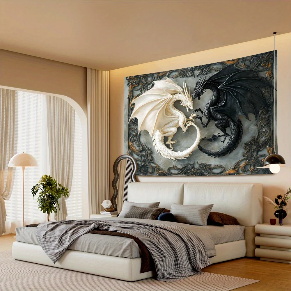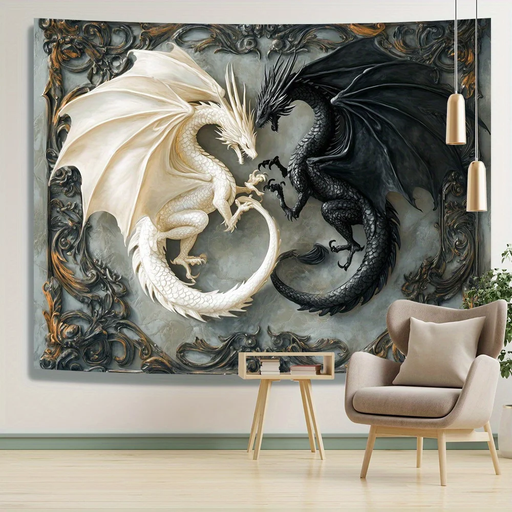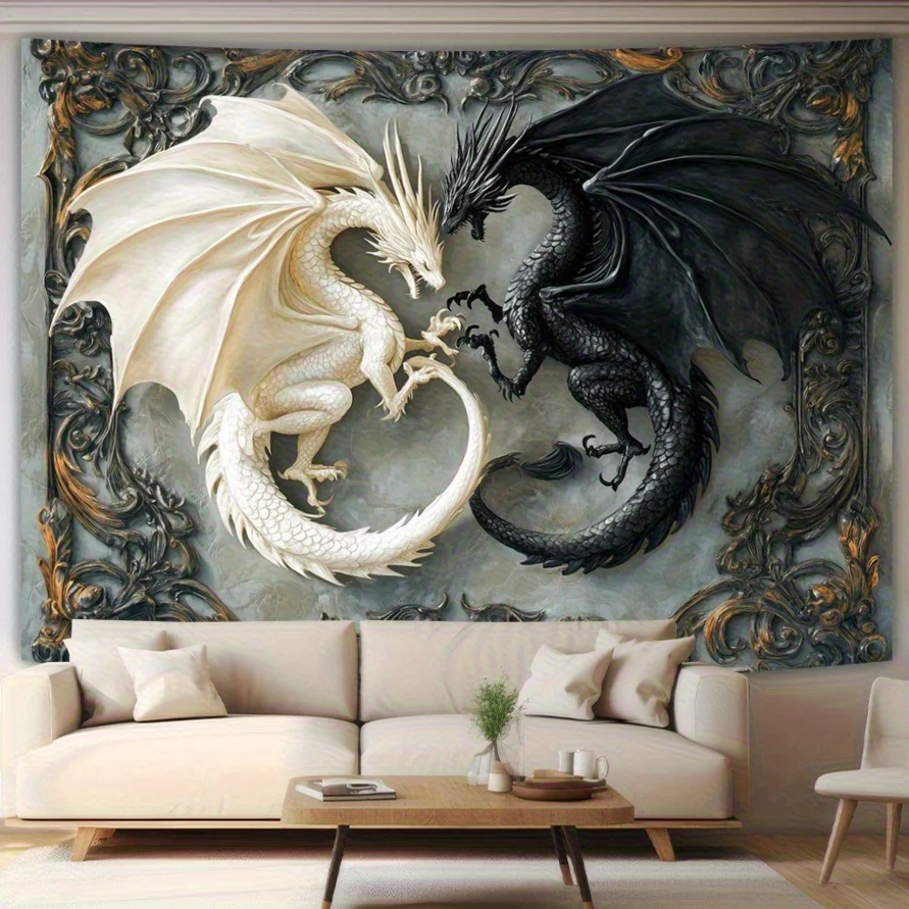 This striking black-and-white dragon tapestry brings ancient wisdom and dynamic energy into your sacred space. Rendered in crisp monochrome on durable polyester, it blends the elegance of yin‑yang balance with the potent symbolism of the dragon—a guardian of strength, transformation, and cosmic flow. In spiritual traditions, dragons embody wisdom, courage, and benevolent power, making this piece a perfect companion for meditation, dream work, or intention‑setting altars. Its tranquil palette promotes inner calm while inviting fluidity and confidence into your environment. Whether draped over a wall, altar, or meditation nook, this tapestry becomes a gateway to aligning with ancestral strength and celestial guidance.