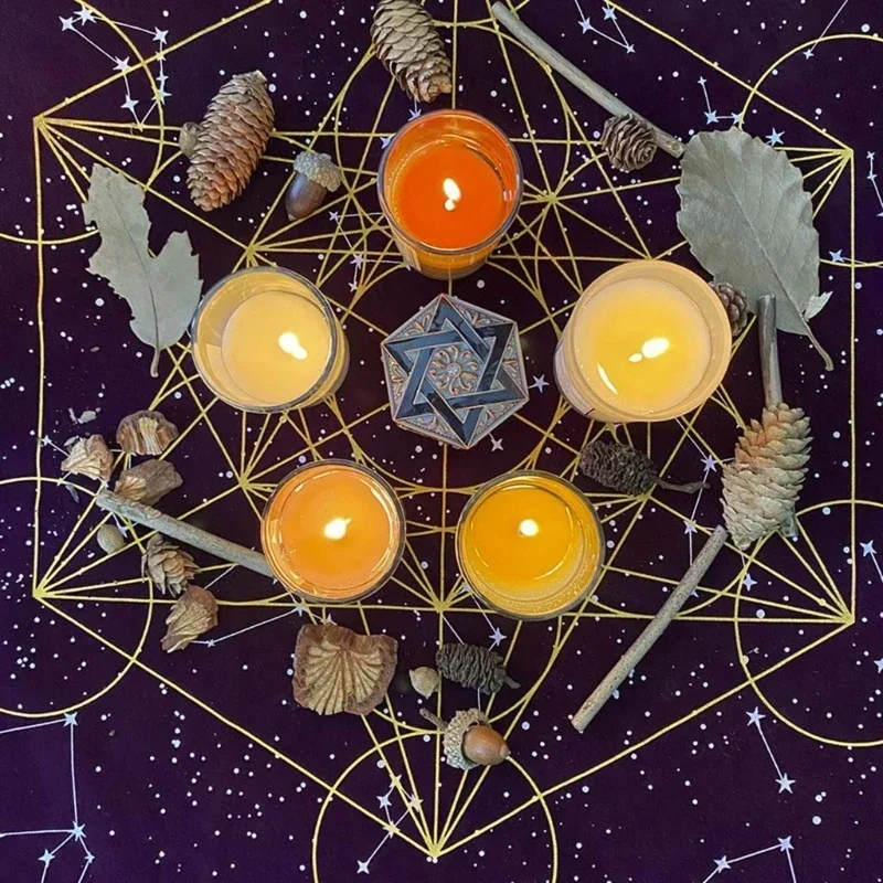 These altar tablecloths unfold seven sacred designs: zodiac constellations, solar–lunar faces, Metatron’s Cube, and the Triple Moon crowned with blossoms. Each variation is a gateway, a map where divination cards, crystals, and offerings rest upon the order of cosmos. Soft to the touch yet powerful in presence, each cloth is a tapestry of balance, turning an ordinary table into an altar of star, flower, and geometry. Offered in three sizes, they travel easily from personal ritual to circle and gathering.