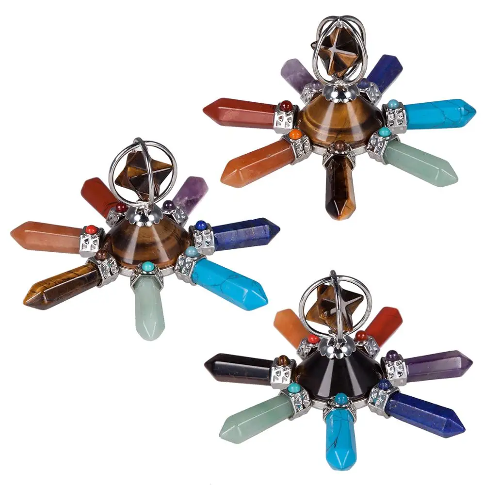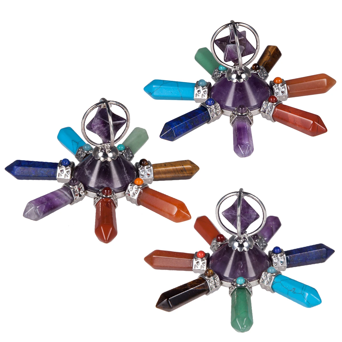 At its heart stands the Merkaba, the light-body symbol — a chariot of ascension said to carry consciousness between realms. Around it radiate seven crystal points, each attuned to the chakra system, each a conduit for the movement of energy through the physical and subtle body. Together, they form a perfect convergence of upward and downward flow — the eternal conversation between heaven and earth, breath and spirit.
