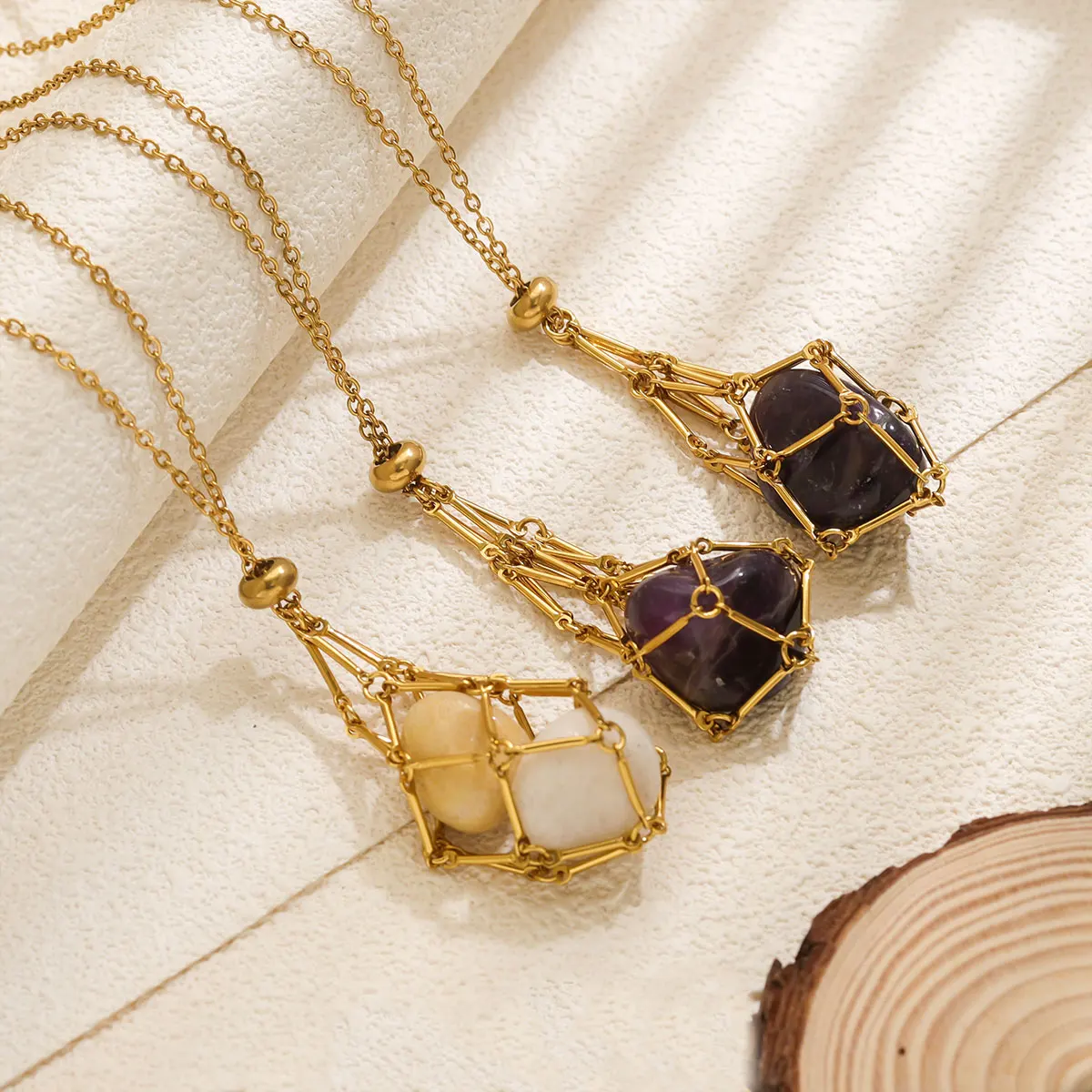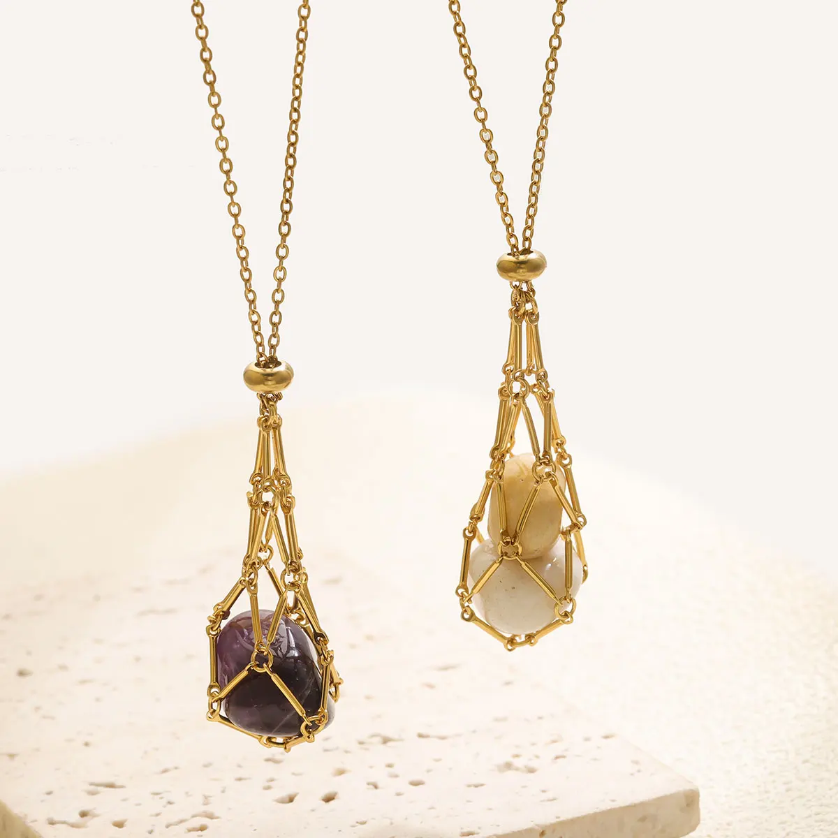 This little net cage turns jewelry into a portable altar. Drop in a stone that matches your aim—calm, courage, focus—and let your hands remember each time they touch it. When the lesson shifts, open the cage and trade the stone. Same necklace, new intention. It’s a kind way to keep your work close without locking it in place.