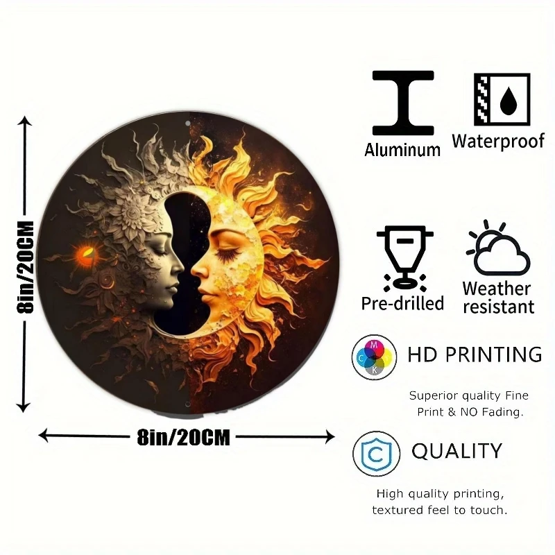 Bring the mystical dance of the sun, moon, and stars into your home with these 3D Round Metal Aluminum Signs. Designed with an etched, dimensional effect that feels alive with texture and depth, each piece celebrates the cosmic balance of light and shadow.