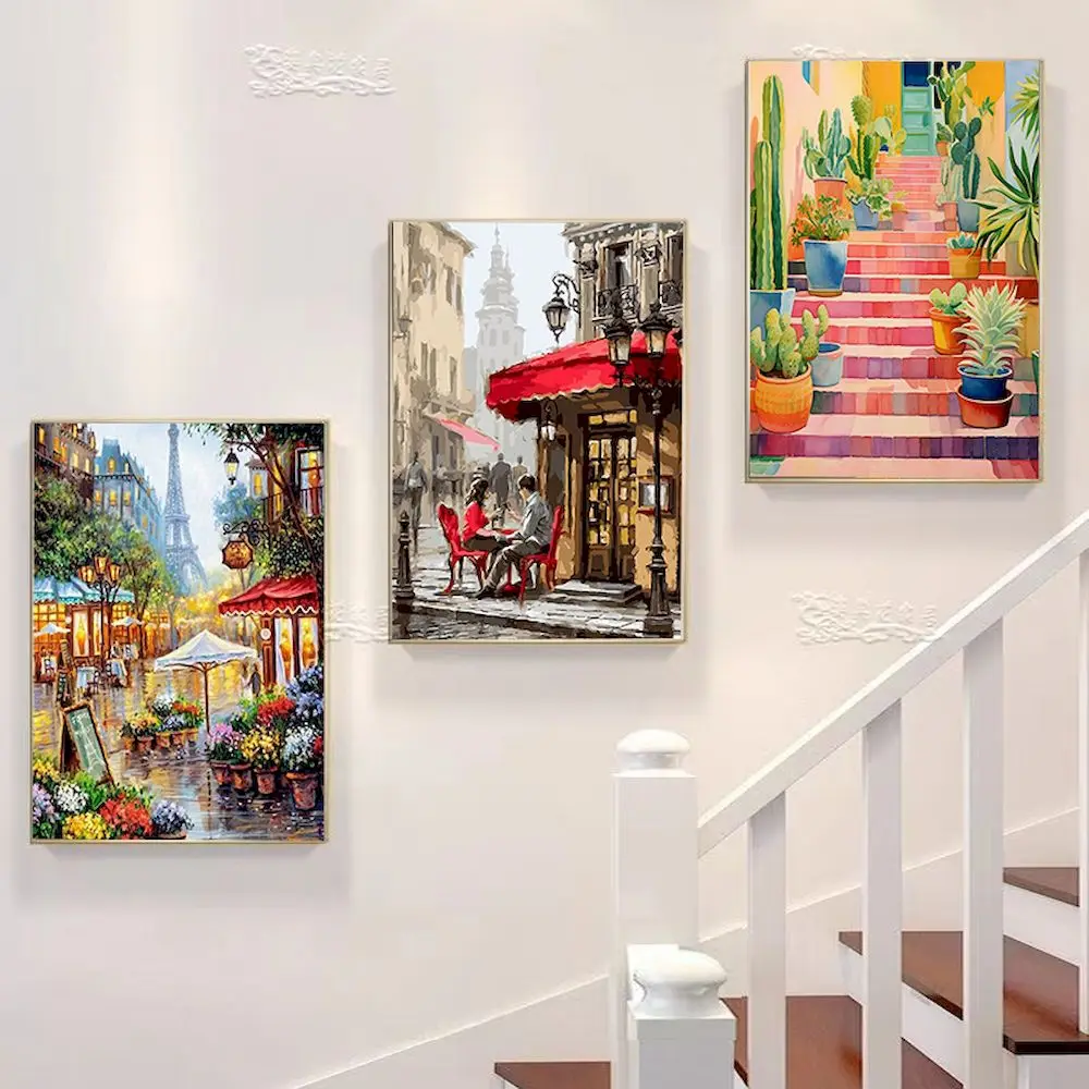 Experience the calming joy of painting with this City & Landscape Paint by Numbers Kit. Each design—from charming European streets and bustling markets to serene lakes, floral gardens, and majestic mountains—invites you into a world of color and creativity.