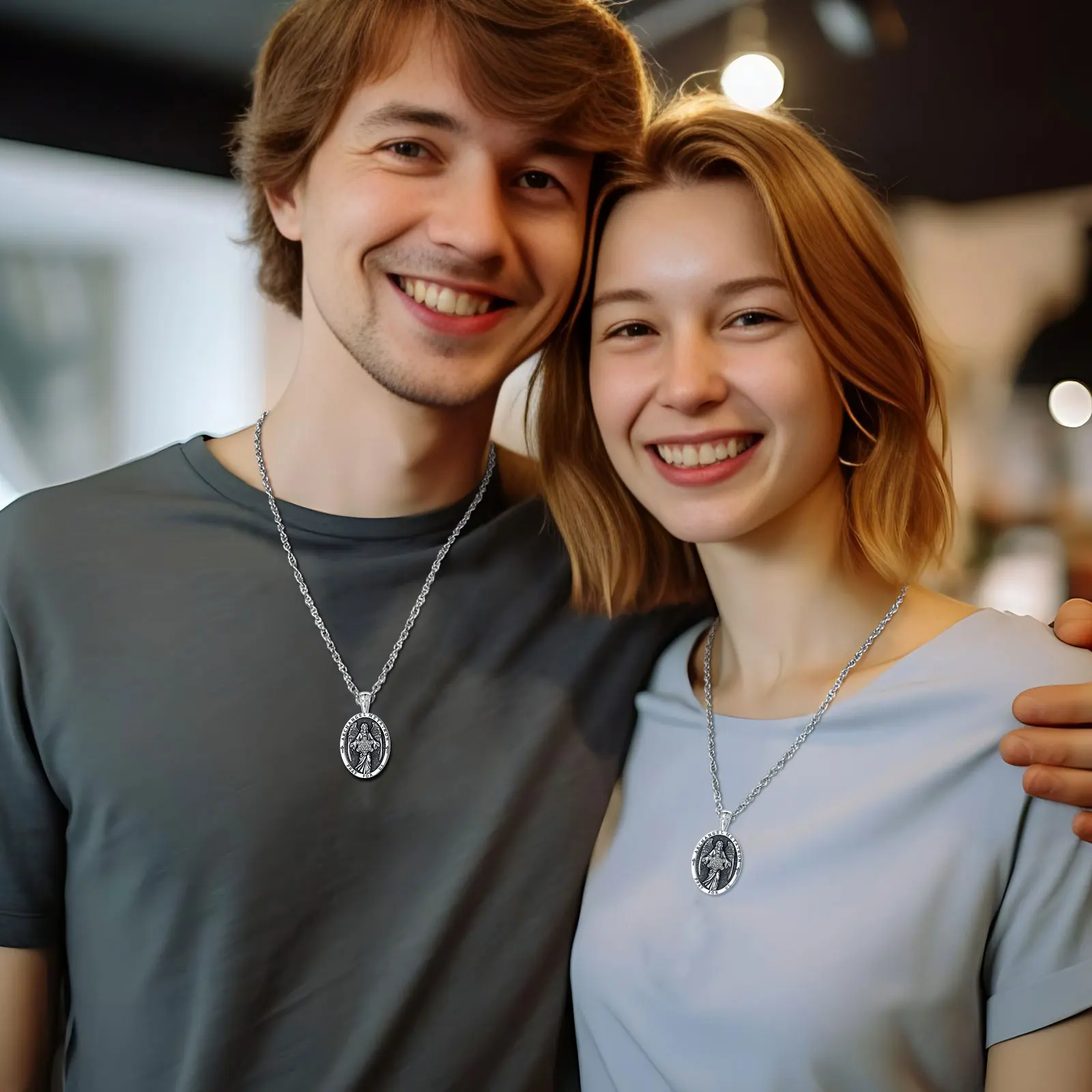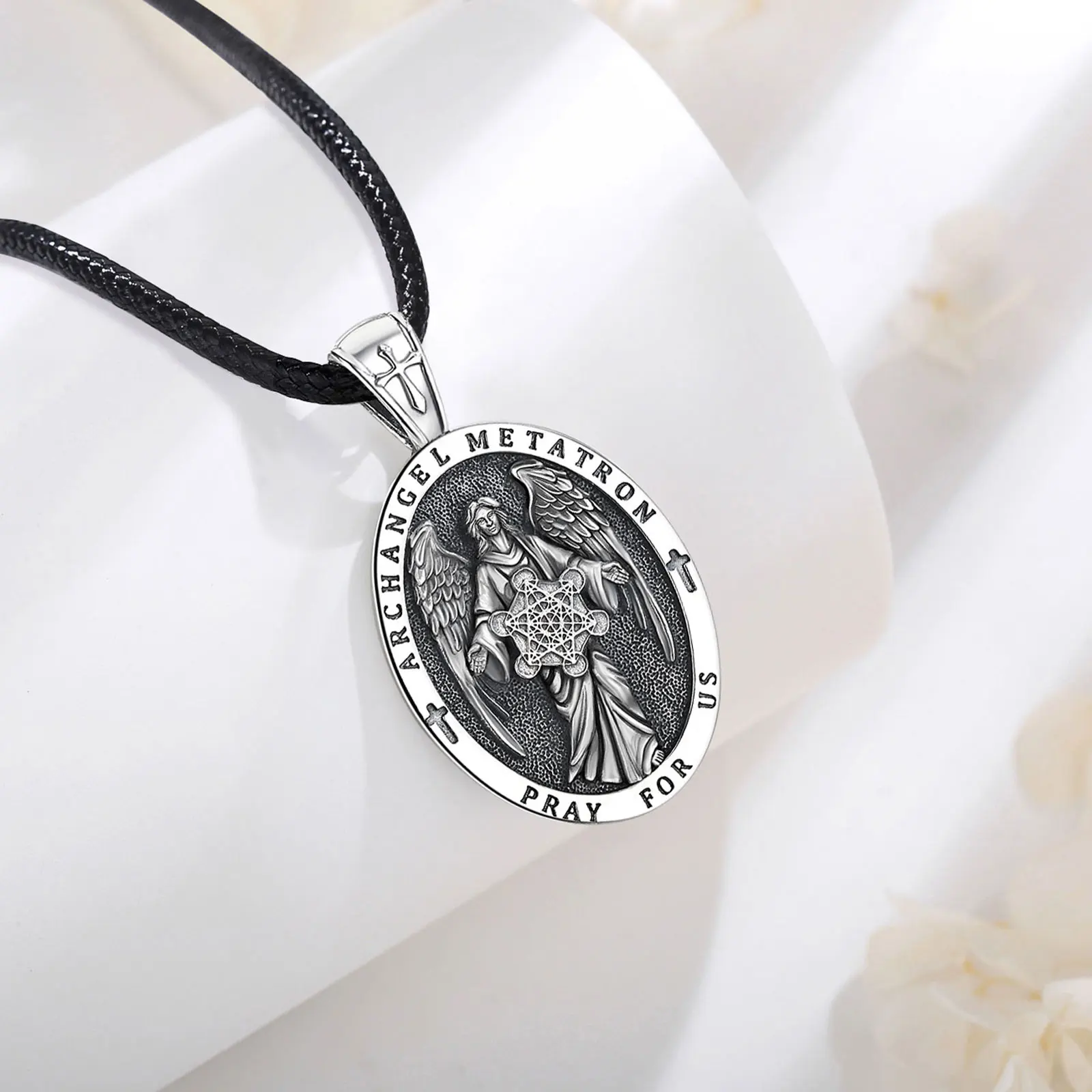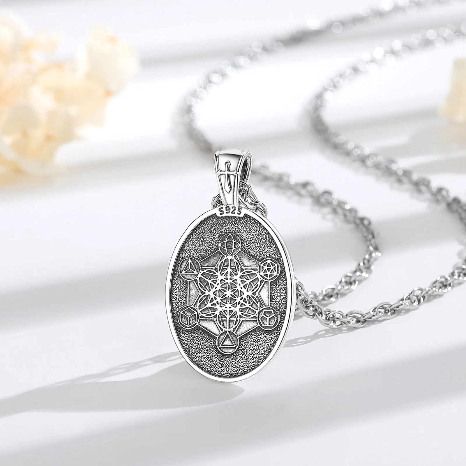 This pendant bears that memory: the Metatron’s Cube, held between the archangel’s hands like a living star map. Cast in sterling silver, it is both seal and cipher, whispering of balance between heaven’s symmetry and the human heart.