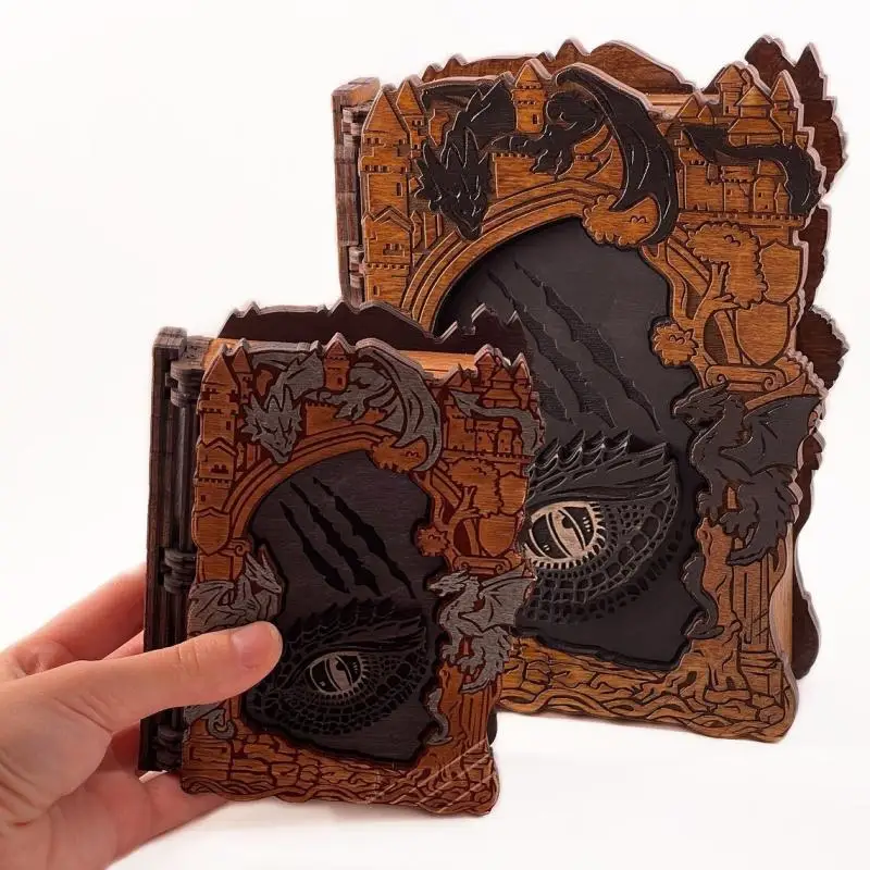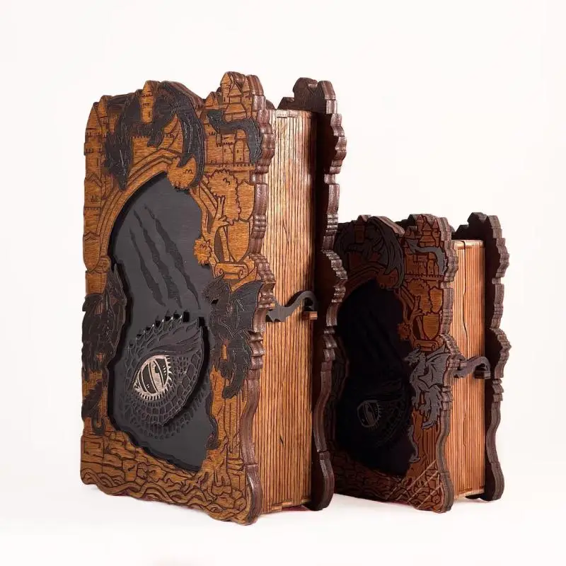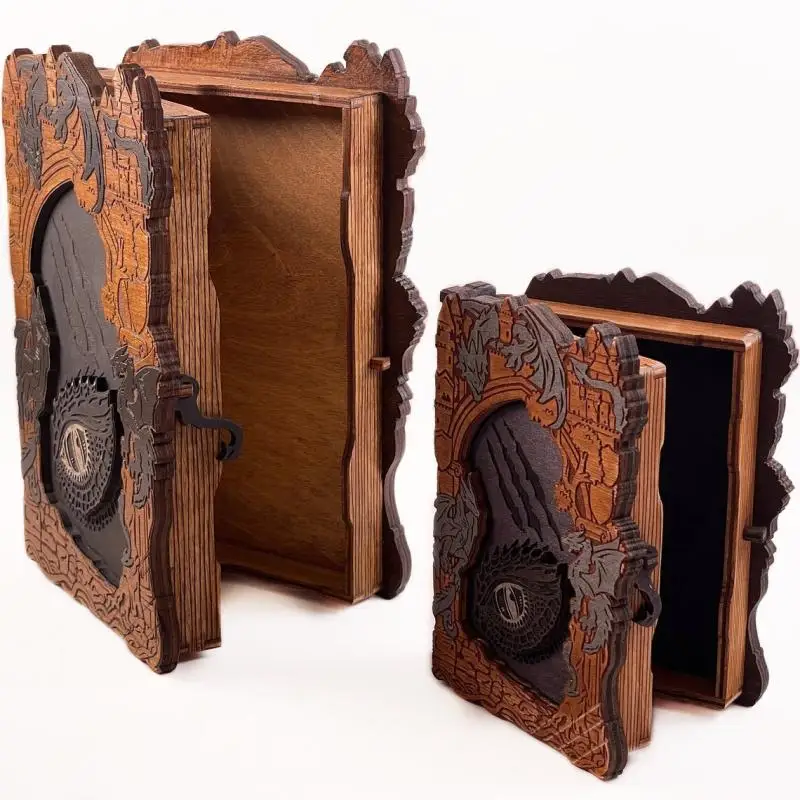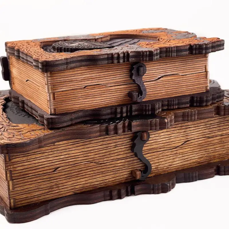 This Grimoire Chest is carved with the marks of ancient keepers — the curling sigils of ward and wing, the dragon’s eye set in quiet watch. Its wood breathes of old libraries and candlelight, of spellcraft whispered before dawn.