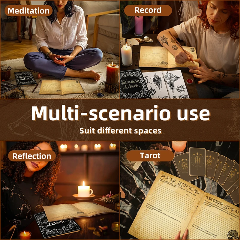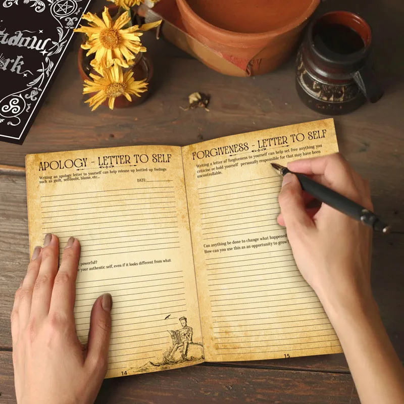 This journal turns “face your shadow” into a steady rhythm: a brief grounding, one honest question, a page of clear words, and a small next step. Prompts like apology-to-self and forgiveness are not punishments—they’re tools that return your voice to you. Keep it on your altar or nightstand. Date every entry. Notice patterns faster than your defenses can spin a story.