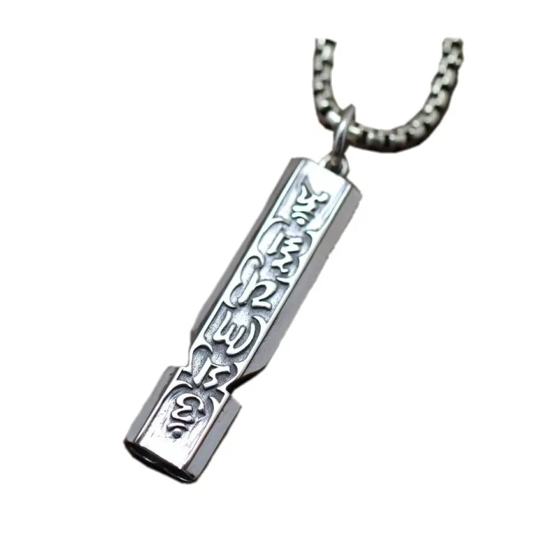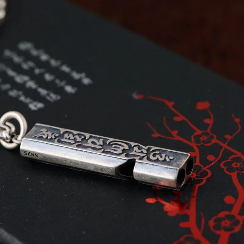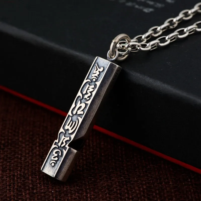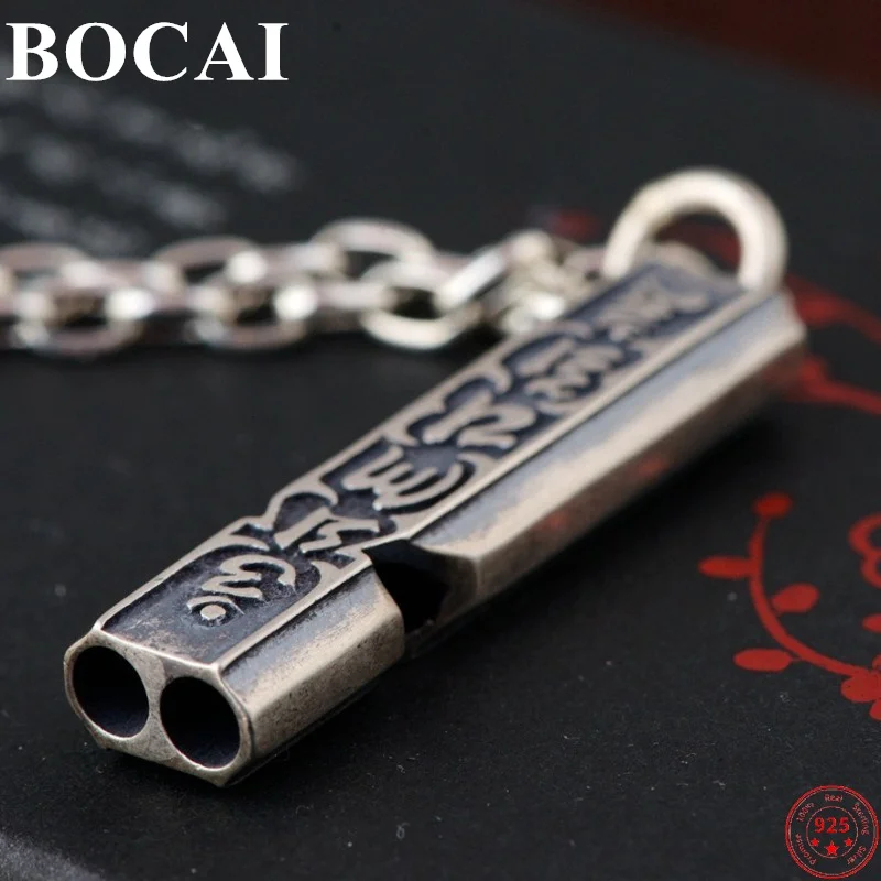 BOCAI S925 Sterling Silver Six-Syllable Mantra Pendant Whistle
