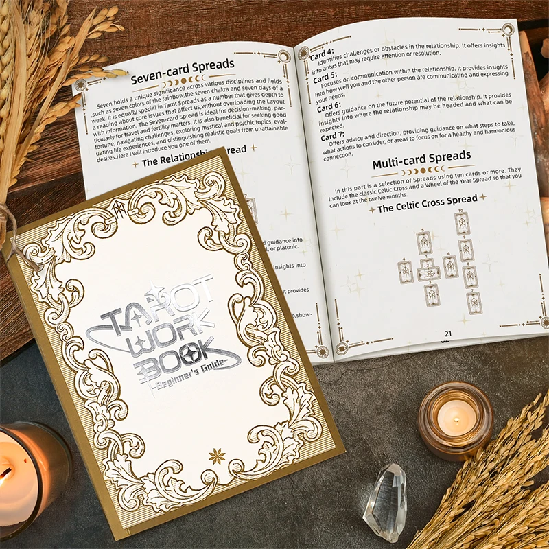 Guided spreads (3-card, 7-card, Celtic Cross, year wheel)—learn forms without searching mid-reading.